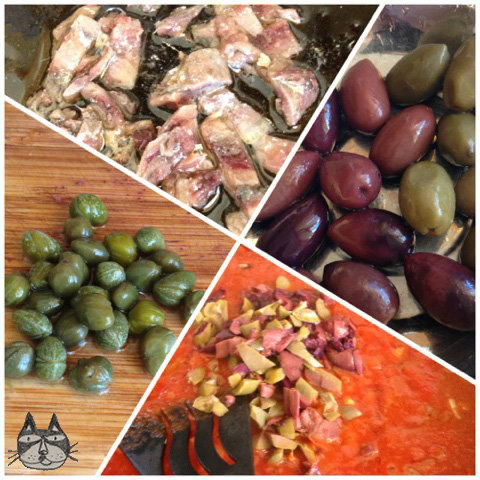 The Puttanesca pasta sauce is a tasty mix of tangy, salty and spicy hot flavours. Puttanesca literally means ‘whore’ and Sugo alla Puttanesca means ‘Whore’s style Sauce’.