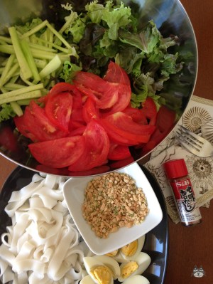 Its summer time now in Greece, and the weather can get extremely hot. But there are times I miss the stir-fried noodles like Mee Mamak, which I would squeeze lime juice all over and mix while its hot. Or Pad Thai, and my Achilles heel of all stir-fries, Char Kuey Teow. It’s too hot (and not to mention very un-dietific) for me to make stir-fried noodles, so I have decided to make it a salad, of sorts.