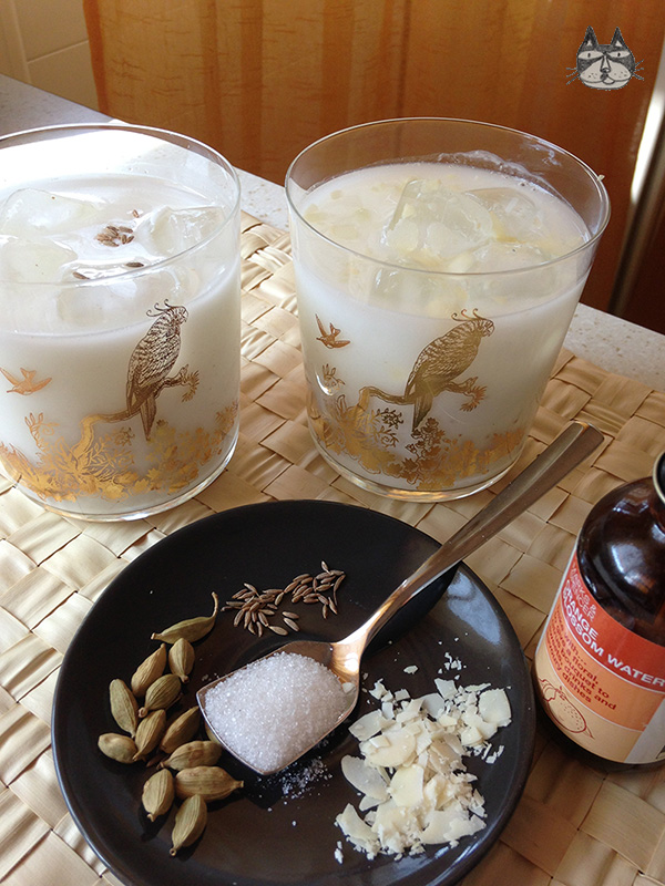 It’s very easy to make. I use Ariani here, or you can use the yogurt-water mix (find the recipe for that here) too, or kefir. I like to use gula melaka here, grated. It adds a bit of colour to the drinks, but feel free to use honey (which tastes excellent!) or any sweetener of your choice. Sometimes, when I can find fresh pandan leaves, I will make pandan essence and use that instead of the rose-water.