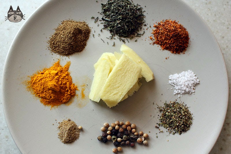 1. Have all the spices ready as seen below. (Grind the pepper.)