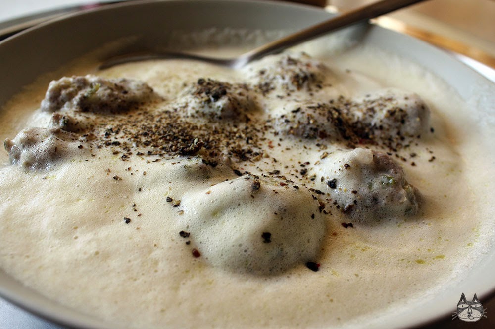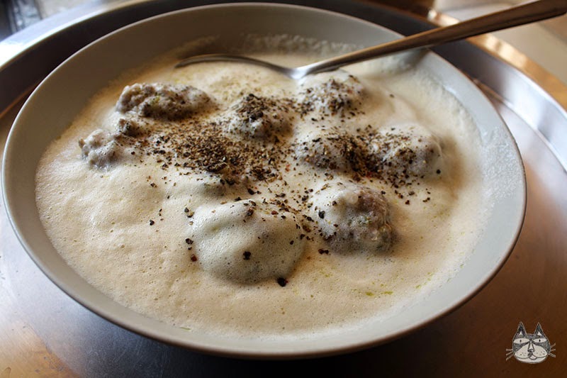 5. Tip in the egg-lemon sauce into the pot with the meatballs. The pot should still be warm so mix in the sauce gently to finish ‘cooking’ with the heat from the soup. If you are concerned about the eggs not being cooked sufficiently, heat it while stirring on low heat for 2-3 minutes. Season the soup with salt, to taste.