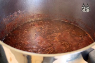 2. Pre-cook the octopus. Add it into a pot, cover and just braise it on medium heat. The octopus will cook in its own juices. Depends on the size of the octopus, but I check how soft it is with a toothpick/small fork after 20 minutes. If it’s a medium-large sized octopus you may need 30 minutes. You will end up with that:-