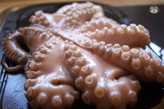 1. Rinse the cleaned octopus. You can cook it whole in the pot, or cut them into several pieces – cut the legs/tentacles off and the center part into 2.