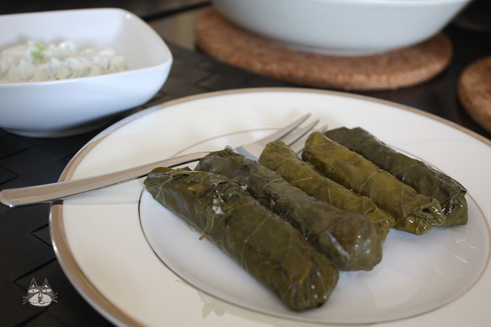 George’s grandmother was here visiting us. And this dish is her specialty. I have been meaning to learn how to make this dish properly from Kalliope, but it is quite a time-consuming dish to make. It requires a lot of patience, but the results are definitely worth it. Her version is simply stuffed with a mixture of rice, dill, spring onions and after rolling them (video included!) you braise them in a mix of lemon juice, water and olive oil.