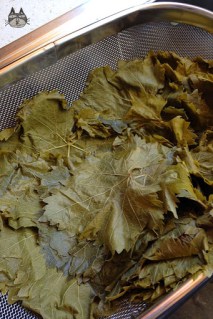 - Sort out the vine leaves – keep the small ones and the very big ones should be kept aside. We can use them to line the bottom of the pot when we braise the dolmadakia.