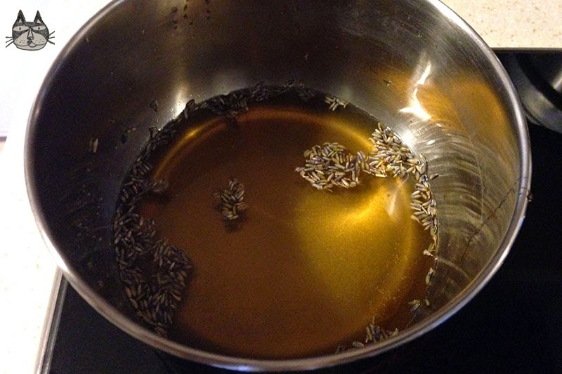 1. Make the lavender syrup. In a pot, mix in the honey, agave syrup and water thoroughly. Add in the culinary lavender and simmer on low heat. When the liquid has reduced to half, take it off the heat and leave to cool with the lavender. This will help it to infuse more. Strain the lavender, and the syrup is ready to use!