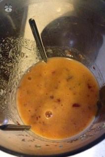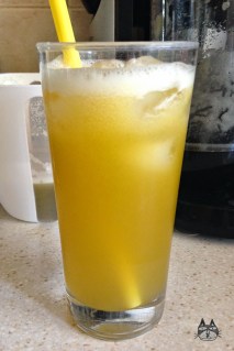 3. Mix in the lemon juice (to prevent it from discolouring more than for flavour), more water and sweeten with the syrup according to how sweet you want it.