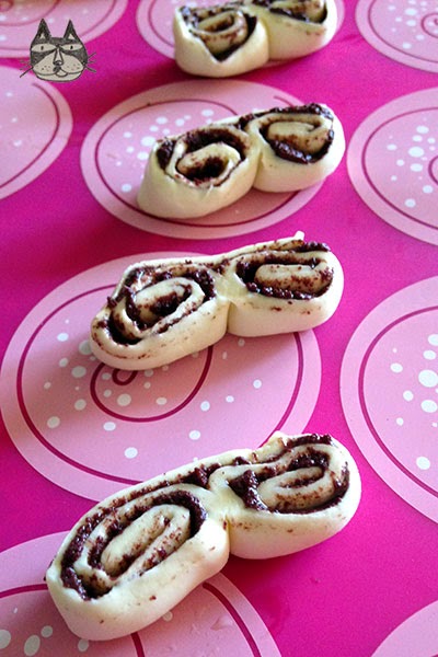7. Lightly flour your knife, and slice the pastry roll into 1cm slices.