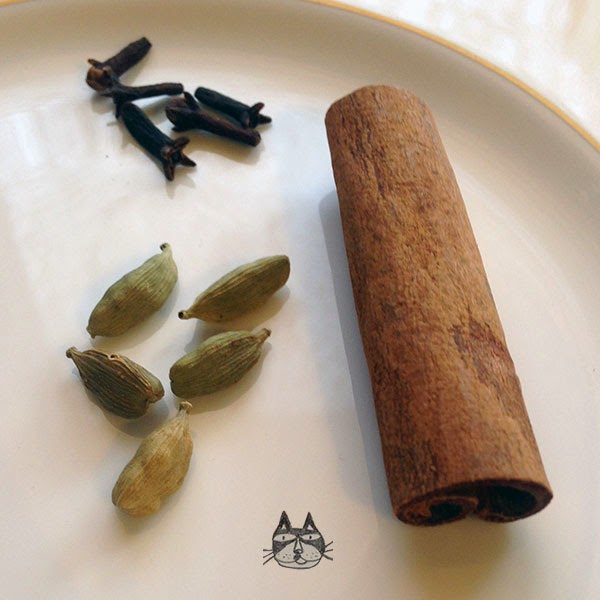 8. Note: To prevent grumpy husbands from going ‘blech’ when he accidentally bites into a piece of cardamom or clove, when the ingredients are ‘dry’ as pictured above, it is easier to notice and pick out the spices before serving.