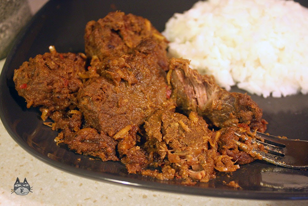 Its been a rainy winter week, and winter time is the best time to cook dishes that takes ages to make – I can be in the kitchen where it is warm, and this rendang is very well suited to cold weather too. With a bowl of pilaf rice or a plate of nasi lemak, this dish is great.