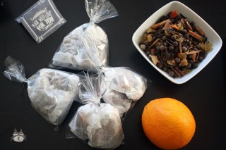 2. Fill the teabags with 2 heaped tablespoons of the spice mix. Tie with the cooking twine.