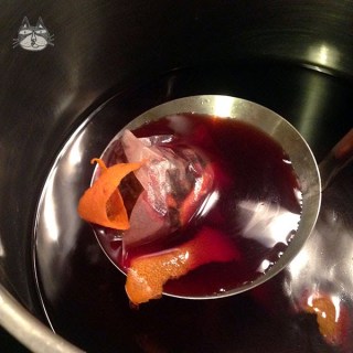 I added a few extra pieces of fresh orange peel when I made the wine, as a taste test. I liked it more orange-y, but George didn’t. The result was a rather fruity and Sangria-like mulled wine. If you like Sangria, add more orange peel. If you don’t, just stick to the normal spice mix.