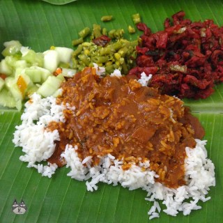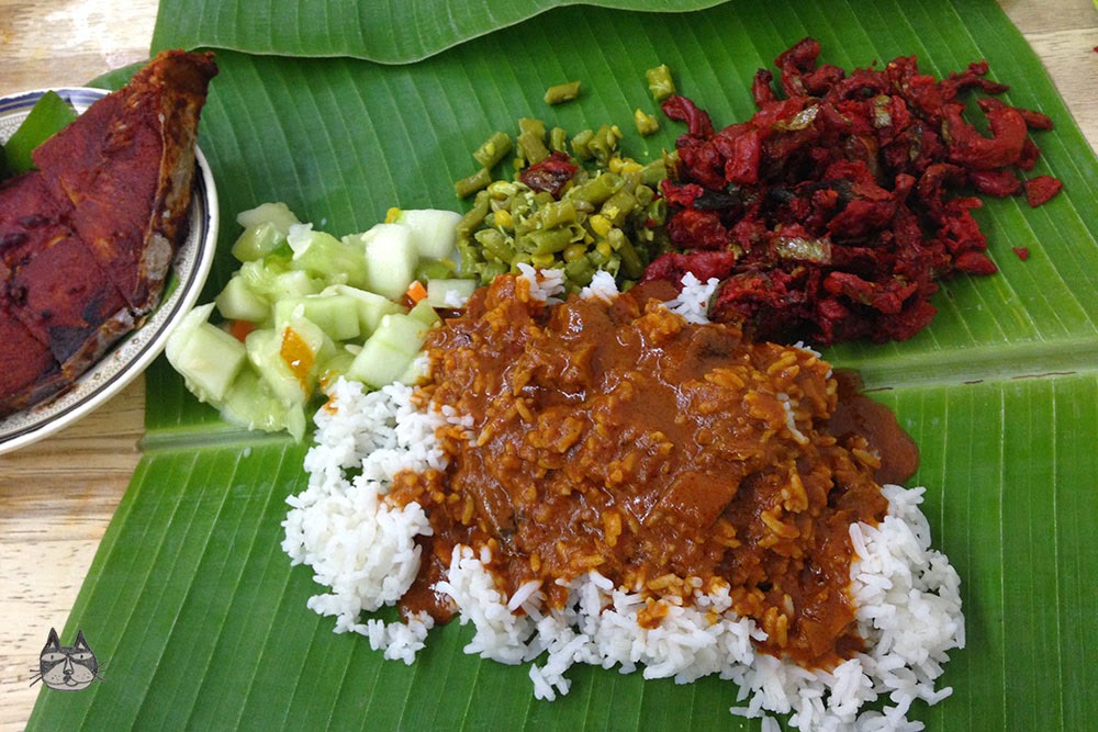 Banana Leaf Rice: This dish is a simple yet very tasty vegetarian (if you don’t order meat or have meat-based curry sauces) meal. It is as the name states. rice served on a banana leaf, with condiments like fried bittergourd, cucumber salad, a choice of sauteed vegetables like cabbage or long green beans, and curry and dhall and acar pickles. It costs RM8 (less than 2 euros at current exchange rates) for the basic meal (which is unlimited!), and you pay for the additional side dishes, and the choice is endless – you can get fried chicken or fish, and all the curried meats you can think of. I had this at Sri Nirwana Maju in Bangsar (opposite one of the Bangsar Village malls), and we even had to queue for a table, it is such a popular place. Highly recommended if you are ever in the Bangsar area.