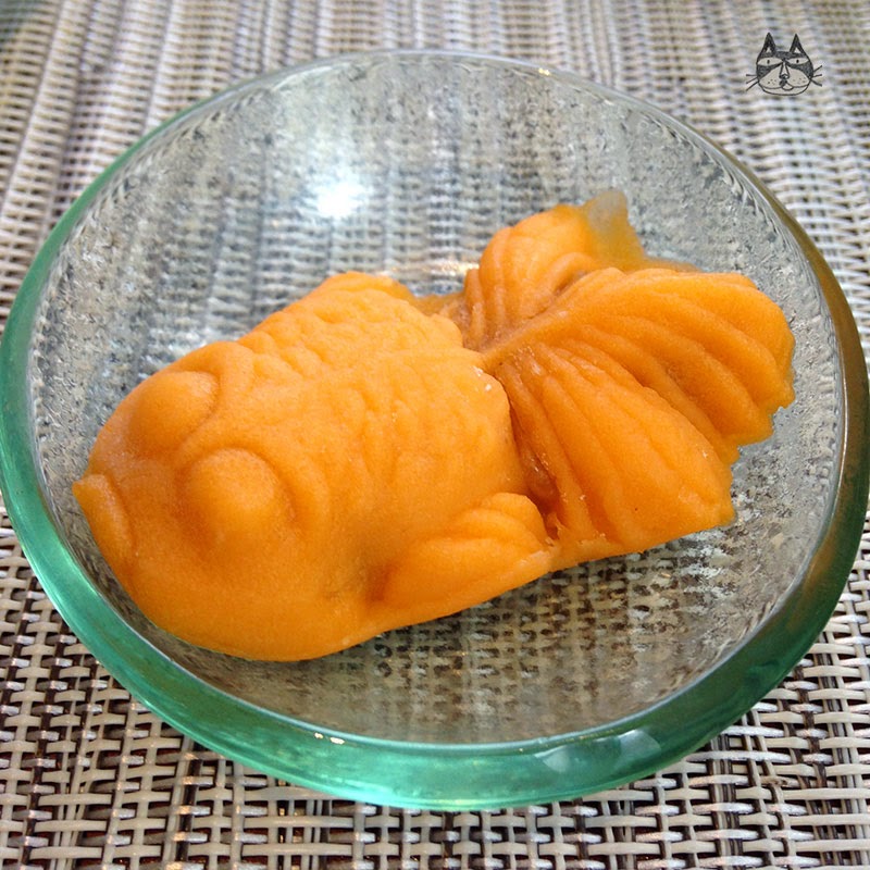 The dessert below is really rather cute. It is a sweet made of lotus paste, shaped into a goldfish and its filling is red bean. It was just so cute and I will be looking for that fish mold (or something similar) so I can make fish-shaped sweets!