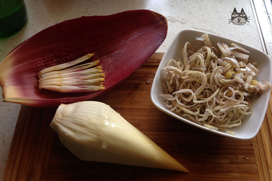 - 100g of banana blossom flowers, sliced thinly (read about how to prepare it here)
