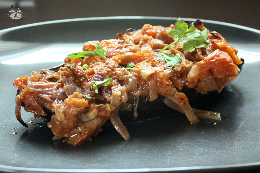 - 5 aubergines, sliced into 2, lengthwise.