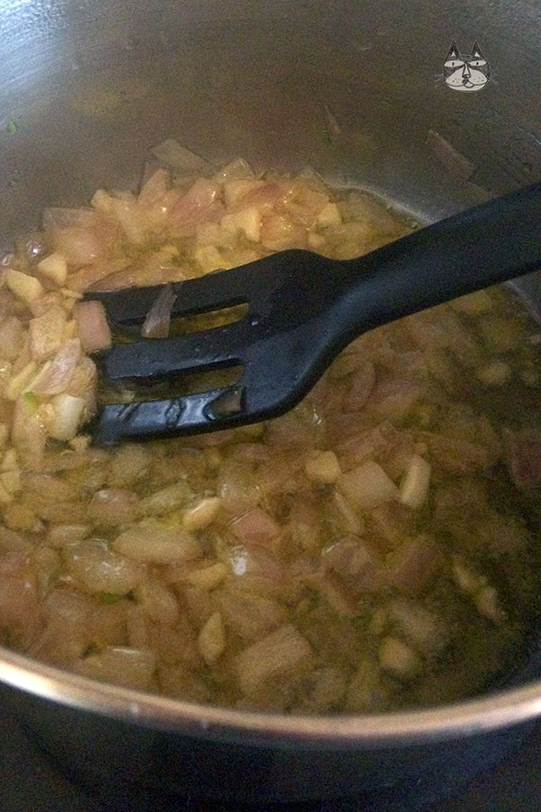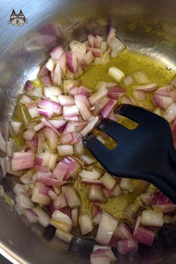 - In a pot, heat up the olive oil. Saute the onions until translucent on medium heat.