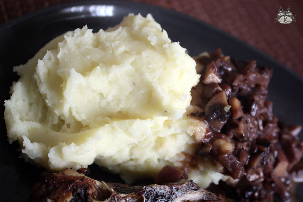 And the mashed potatoes, well, is mashed potatoes. You can also buy them ready-made in a box and just add water, because its fast and easy. I chop the potatoes into small cubes so that it cooks faster, and easier to mash with a fork later. I sometimes like my mash to be a bit garlicky, especially if I am having it with a simple roast chicken. It’s optional, but you can boil together the garlic with the potatoes and just mash it in together. The boiling process takes away the sharp tang, but leaves the smooth garlicky flavour.