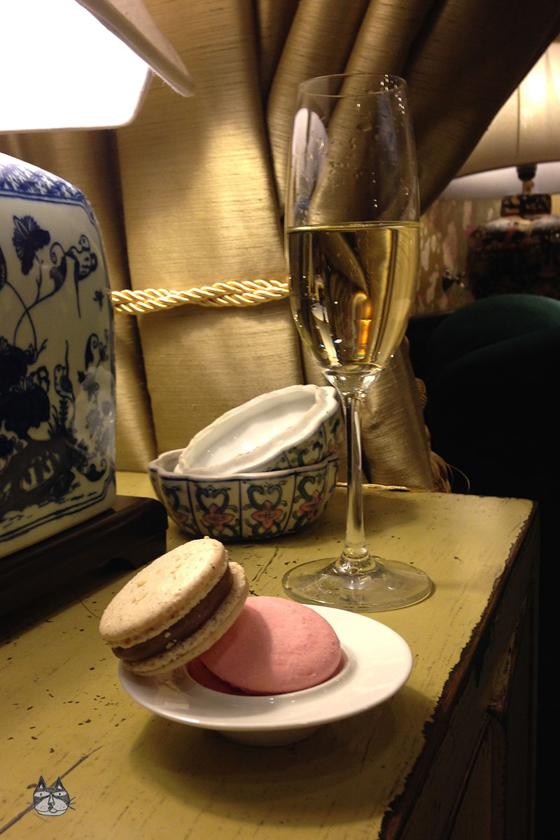 Our nail technicians arrived and they brought out our drinks and macaroons (I had 2 – one mocha and 1 strawberry), and we were asked to choose the colour of our nails from a big swatch of nail colours. I chose a shade of pink called ‘Guilty Pleasures” from Essie, for both my feet and hands.