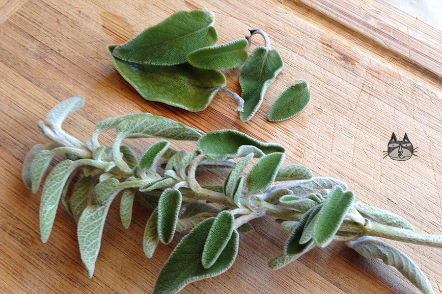 - sage leaves, about 16 medium-sized ones – best estimate about 2 tbsps worth of really small leaves.