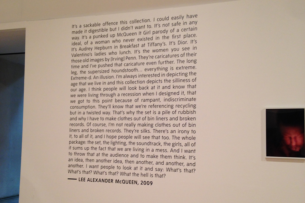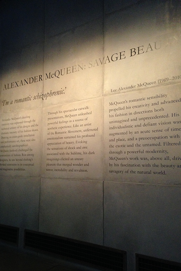 It was an extraordinary opportunity for me, during this trip, to not visit one, but two exhibitions about the designer Alexander McQueen. I was lucky enough to receive a gift from a friend of my sister – Dorian – of 2 Victoria and Albert Museum Complimentary tickets. This was a sold out show, with some people buying tickets months before (with time slots!). I was really extremely lucky. Photography was not allowed inside the exhibitions, but it was wonderful, to be able to see the process of the creation (at the Waplington photography exhibition at Tate Britain) and also the end result (the Savage Beauty exhibition at V&A.)