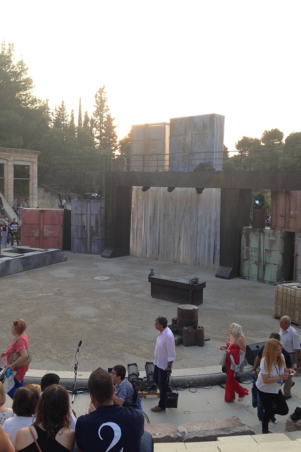 When we arrived, people were already queuing to enter. We got to our seats, and watched the sun set slowly over the theatre set.