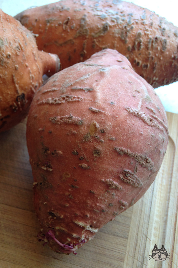I do like to ‘roast’ potatoes in the oven (oven-fry?). It’s a healthier version that actually frying them in oil, and I like the crunchy texture that you get when you bite into the potato. I have made a version of this with green bananas, and sweet potatoes cook faster than usual. The day I made this, there was a basketball game on TV, and it was a great TV snack! I served it together with a Preserved Lemon Mayonnaise and a bowl of Mango Salsa.