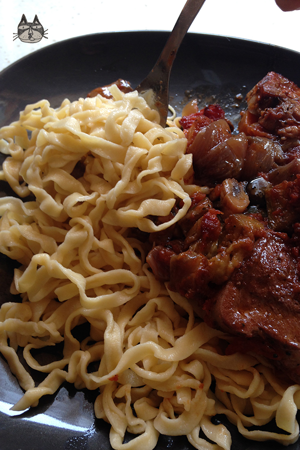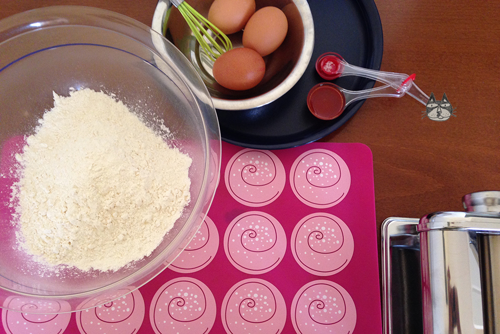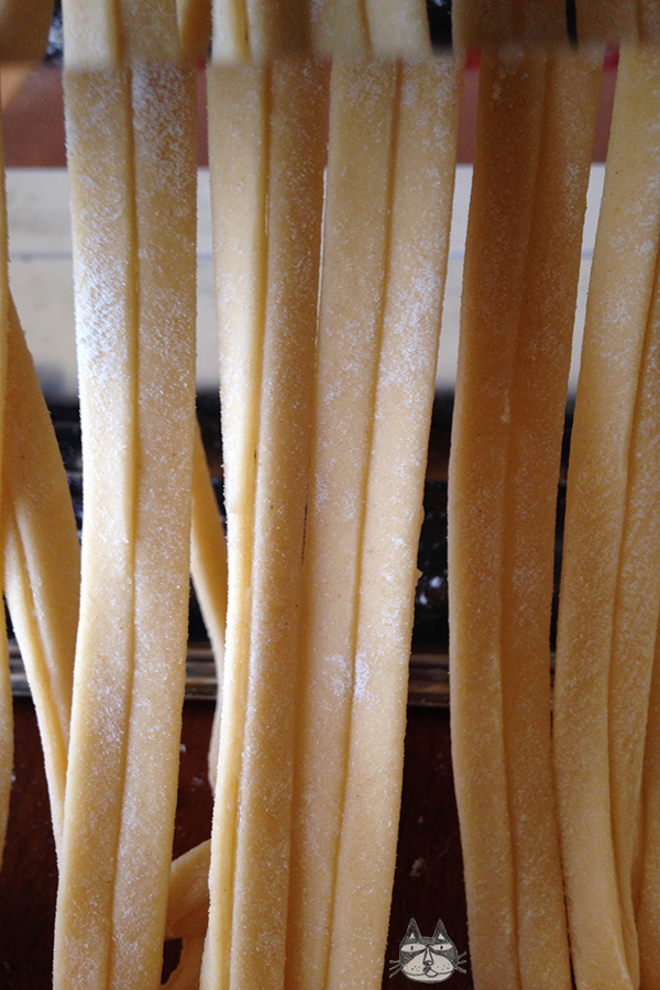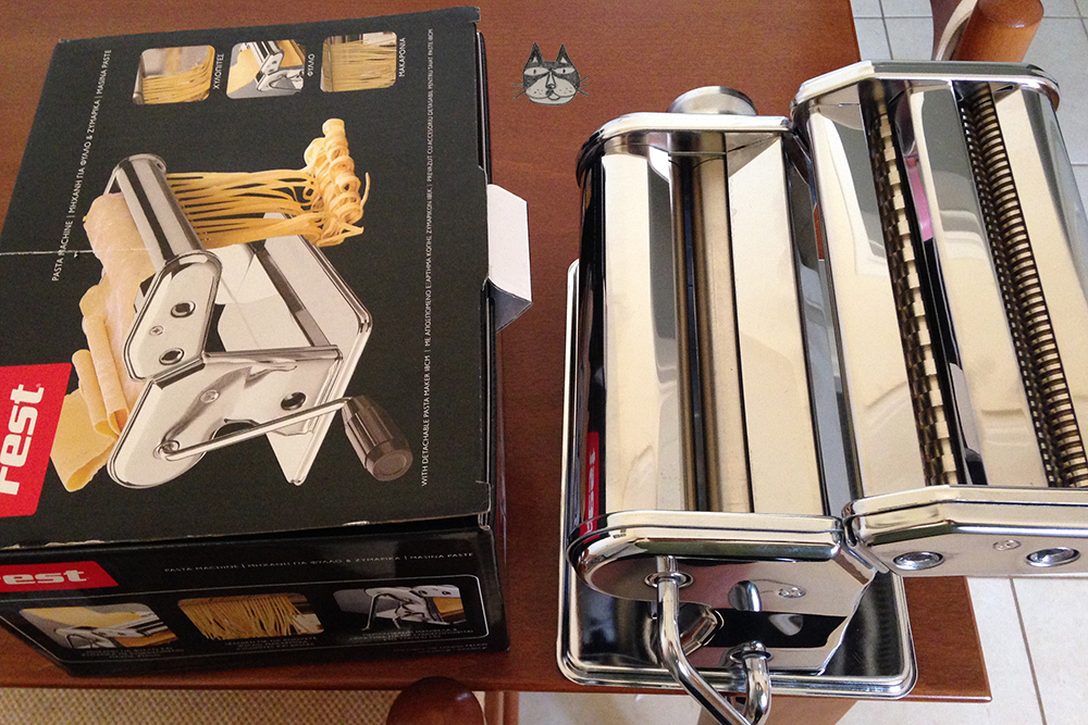 I got a pasta maker for my birthday! I have always wanted one (I am absolutely crazy for kitchen gadgets) and I spent Sunday morning doing research on how to make pasta and noodles from scratch. This is my very first batch, my very first attempt at homemade, fresh egg pasta! I would love to make (in the near future) pasta with flavours, like saffron or spinach; and attempt to make Asian noodles (rice flour, anyone?) too! Watch this space! Yinnie has a new toy….