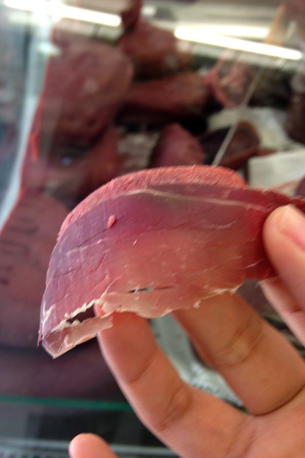 This was an interesting experience for me. We were wandering about with no purpose around the market, and stumbled upon this lovely gem of a place. The guy behind the counter, Andreas, was very nice and kind to us. We tried the cured/dried meats on offer and we bought a variety of meats. The speciality of this shop is of course, Pastourmas. It’s cured beef covered with spices – fenugreek, cumin, allspice and paprika.