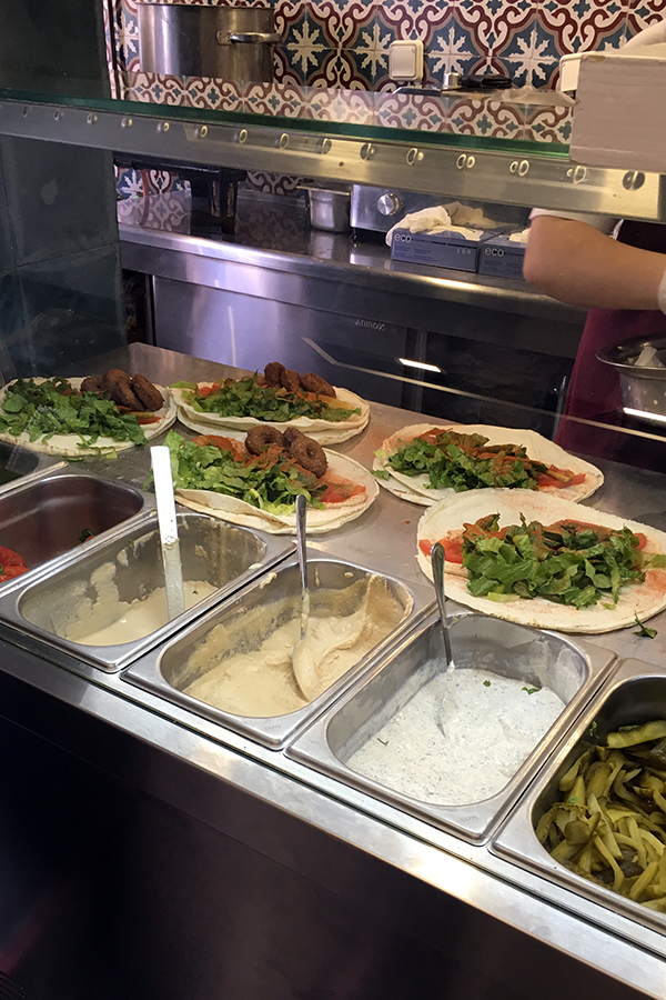 This is the only shop out of the 4 that doesn’t really specialise only in falafels. It is a café bar, and it has beautiful decor inside. They serve a variety of food and drinks – freshly made juices, salads, sandwiches, desserts like waffles, and cocktails.
