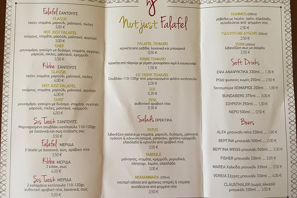 Food fads come and go, but there is one food ‘trend’ that has captured the hearts (and stomachs) of many Greeks and foreigners here living in Athens; and it is here to stay: falafels. I encountered Falafellas a few years ago and you can see why I said that it is here to stay. There lots of places that serve falafels now in Athens, and we (Alison and I) have decided to choose 4 right around the Monastiraki area of downtown Athens to test. There are other establishments that are further away, which we will write about in the near future. After buying the falafel sandwiches, we went off to a small park closeby and had a picnic! You can read about Alison’s thoughts on our ‘taste wars’ here.