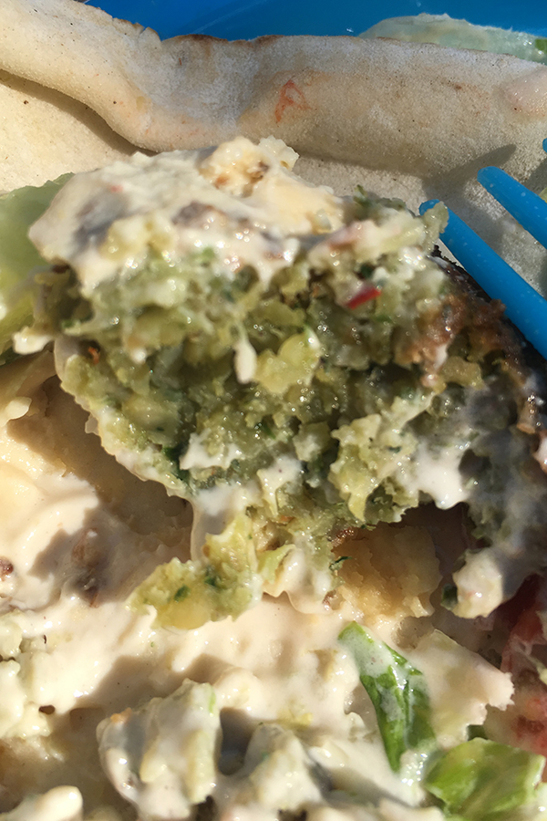 This is the priciest falafel of all the 4 places. It was quiet when I got here, and the atmosphere in the café was relaxing. The chef made the falafel right in front of me, and he shredded he mint leaves right in front of me – and I loved the smell.