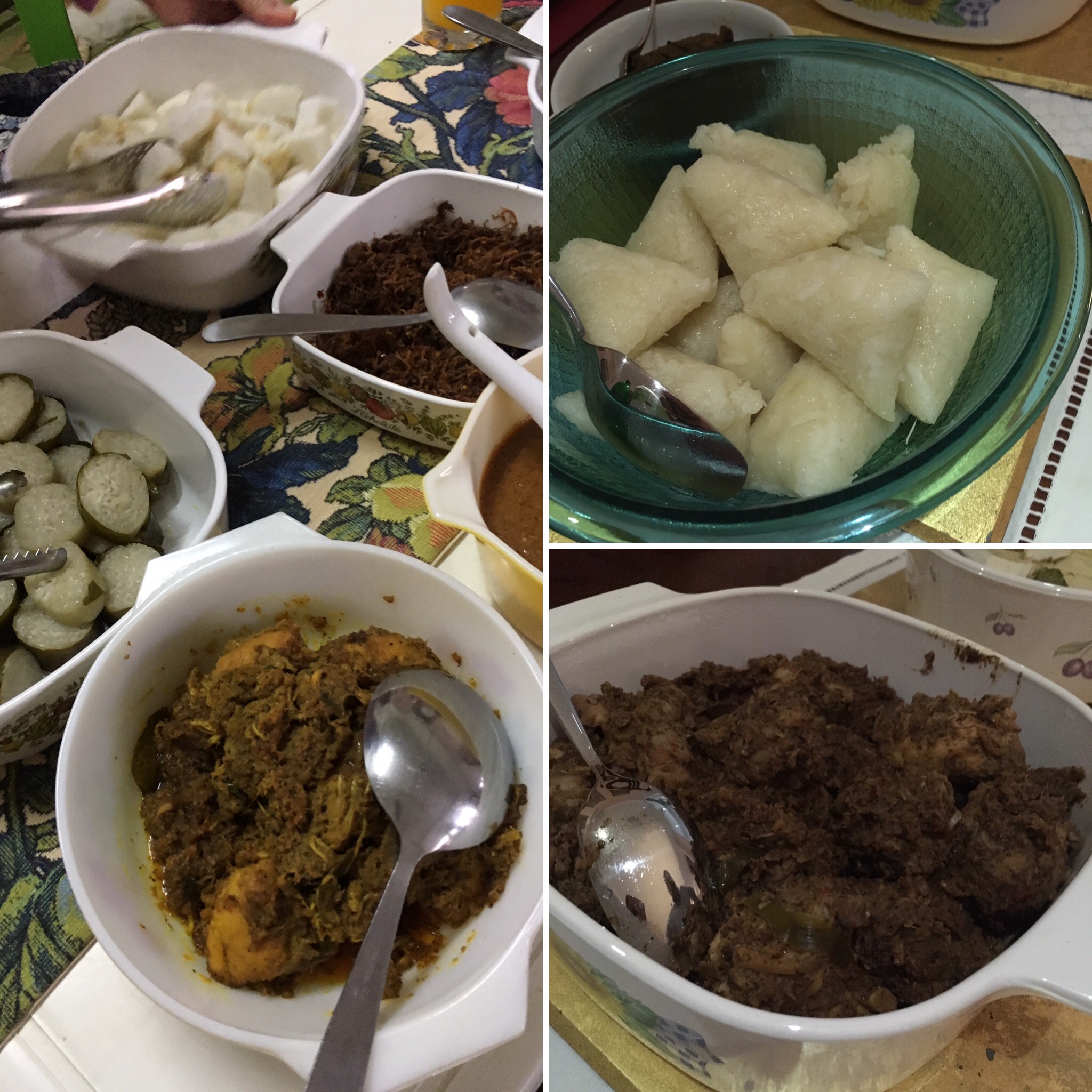 It was Raya (Hari Raya Aidilfitri or Eid) and it was the time for traditional food. Different types of rendang – chicken, beef, offal… Glutinous rice cooked in coconut milk like lemang (rice cooked in bamboo with coconut milk) and nasi daun palas (rice cakes cooked in coconut mlik) and nasi impit (more rice.. but this time not cooked in coconut milk)…. Also served was a variety of cookies and cakes, and I will feature here one of these days, a recipe for a cake that has a rather interesting story behind it – family history and everything in between.