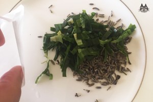 - Cut the pandan leaves into tiny strips, and mix them with the lavender buds.