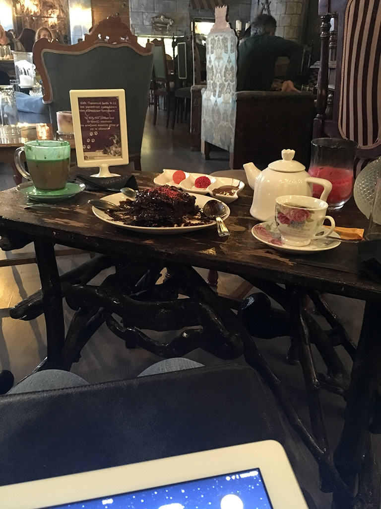 If you like Disneyland and themed-cafes; and/or sugar and chocolate-laden desserts, this is the place! I first came here with another Malaysian-to-Athens-transplant, Priscilla. This café (and now a pastry shop too!) is located in Nea Filadelfia, a suburb of Athens and is easily accessible by public transportation. I love this area, it has a lot of old colonial-looking buildings and refugee (from the 1922 population exchange-times) houses and it is a very cosy and friendly place to be!