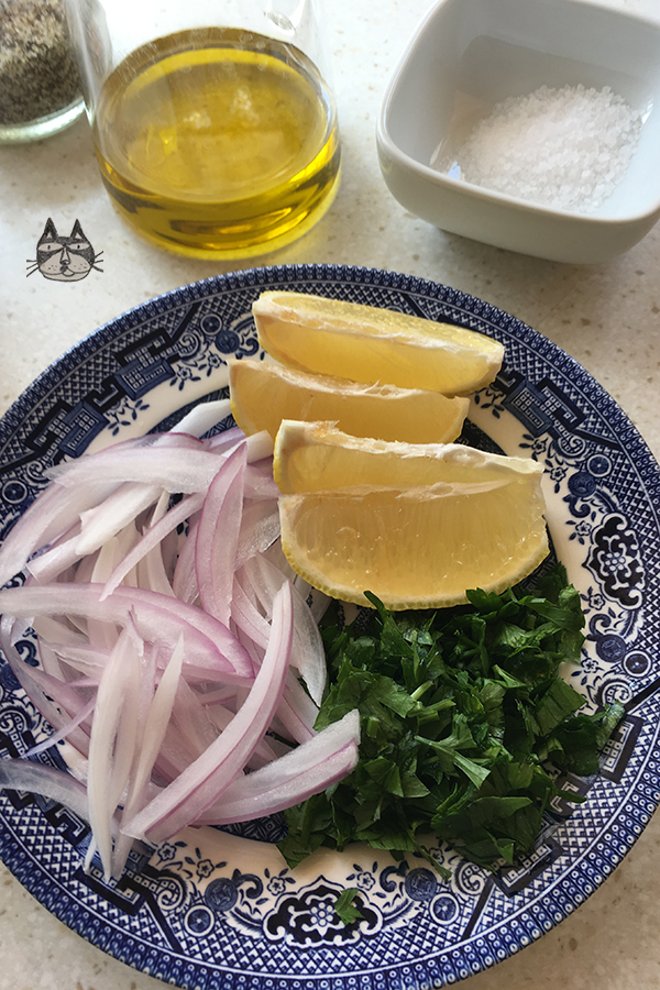- Serve, and garnish with the onions, parsley and olive oil lemon dressing according to taste.